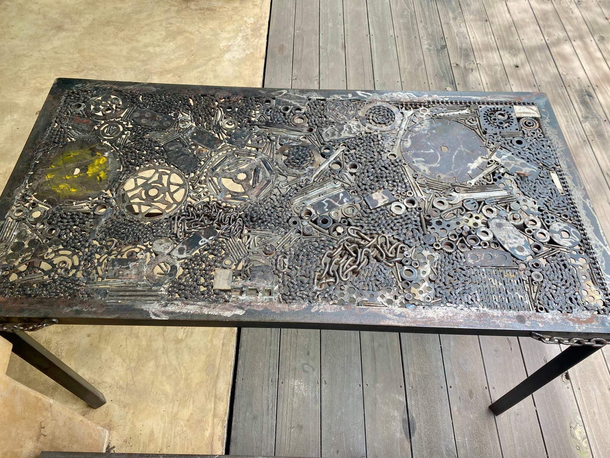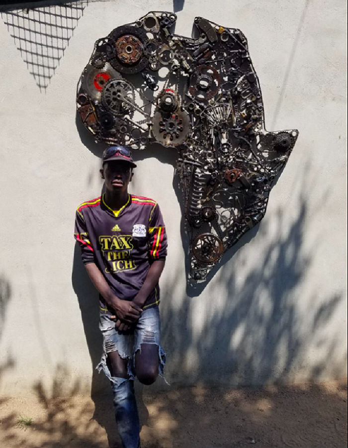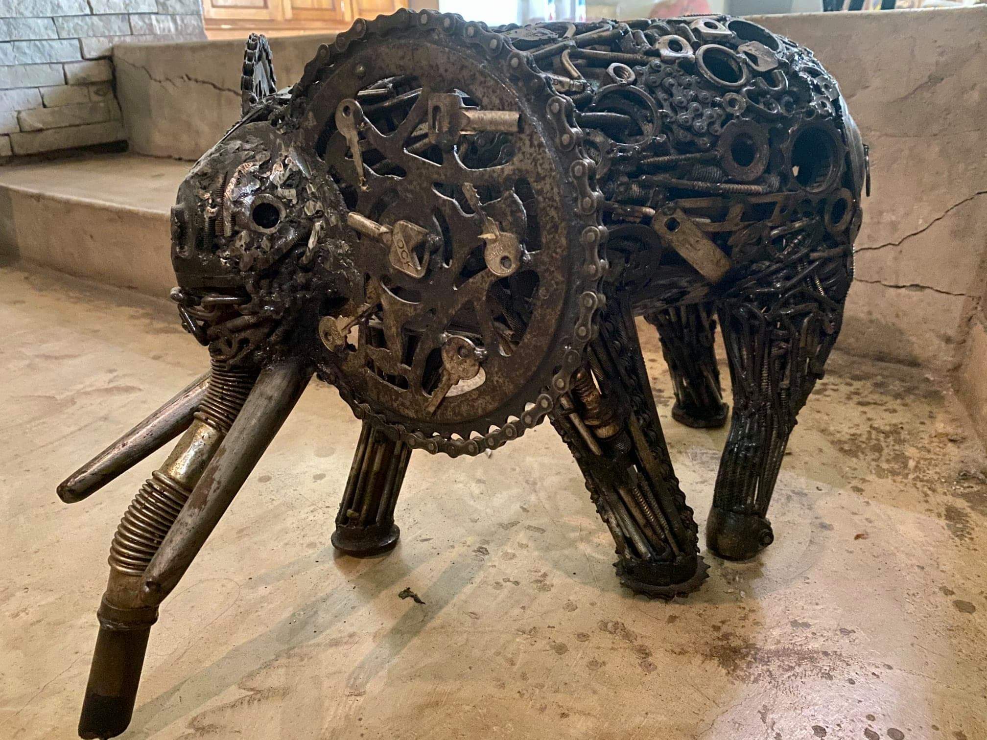 I see beauty in junk and encouraged young people to think twice before getting rid of metal with no regard for the environment. Popular in my work is bicycle chains, and some of his signature pieces usually include metal nails, house keys, old gardening tools and different car spares.